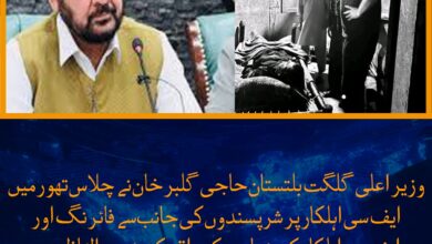 وزیر اعلی گلگت بلتستان حاجی گلبر خان نے چلاس تھور میں ایف سی اہلکار پر شرپسندوں کی جانب سے فائرنگ…